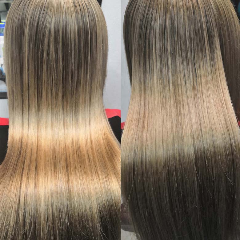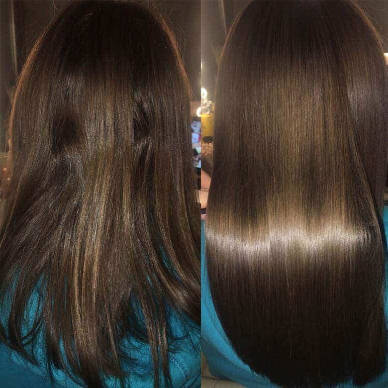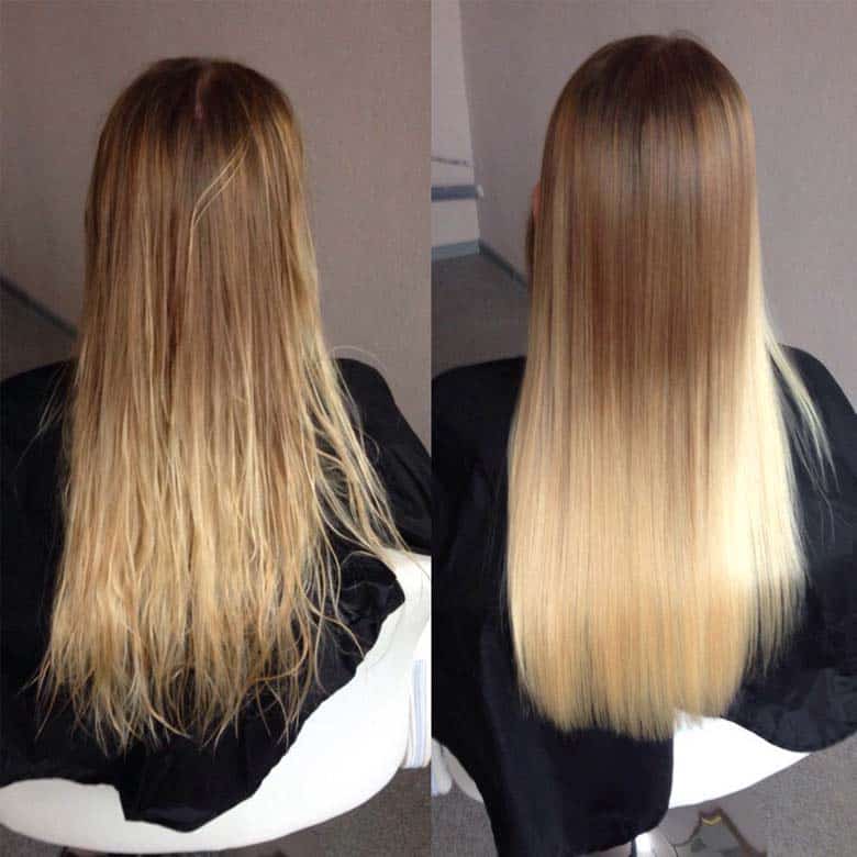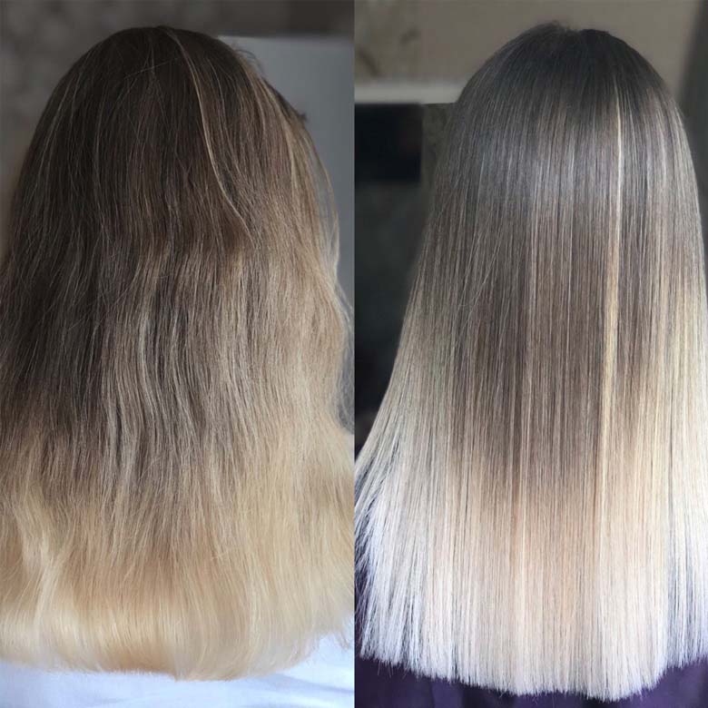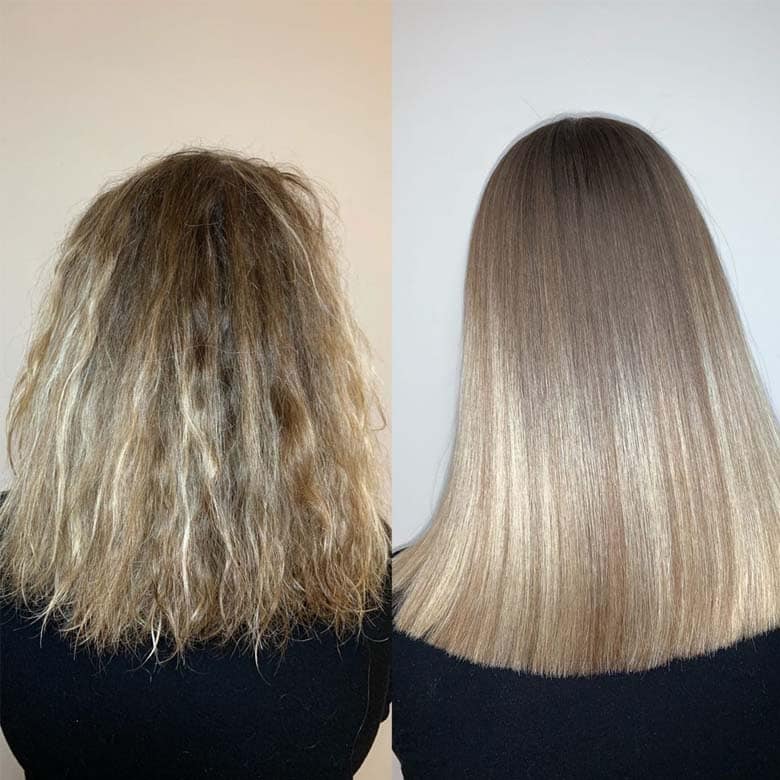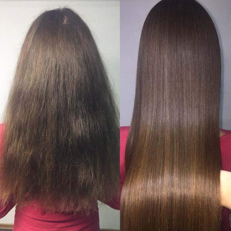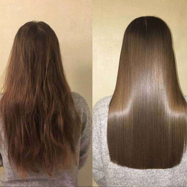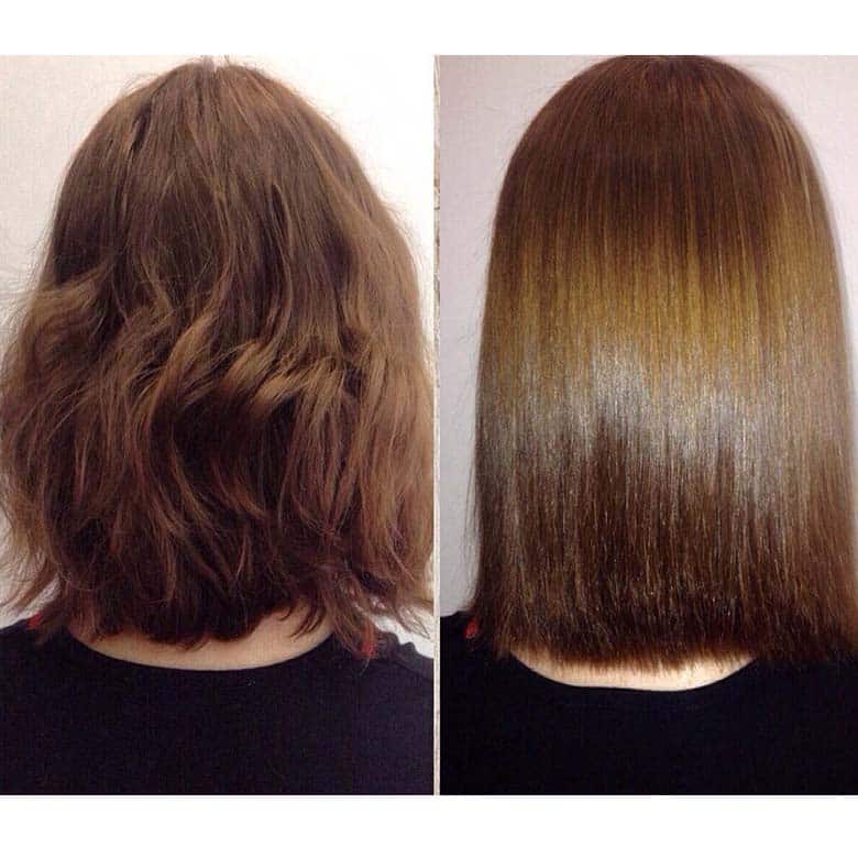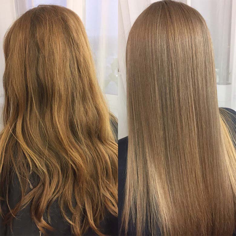 You get perfectly straight, moisturised hair forever! Only the roots grow back curly. It will save you from exhausting hair straightening with a flat iron and combing of tangled curls, give curls incredibly smooth, silky, obedient and shiny.